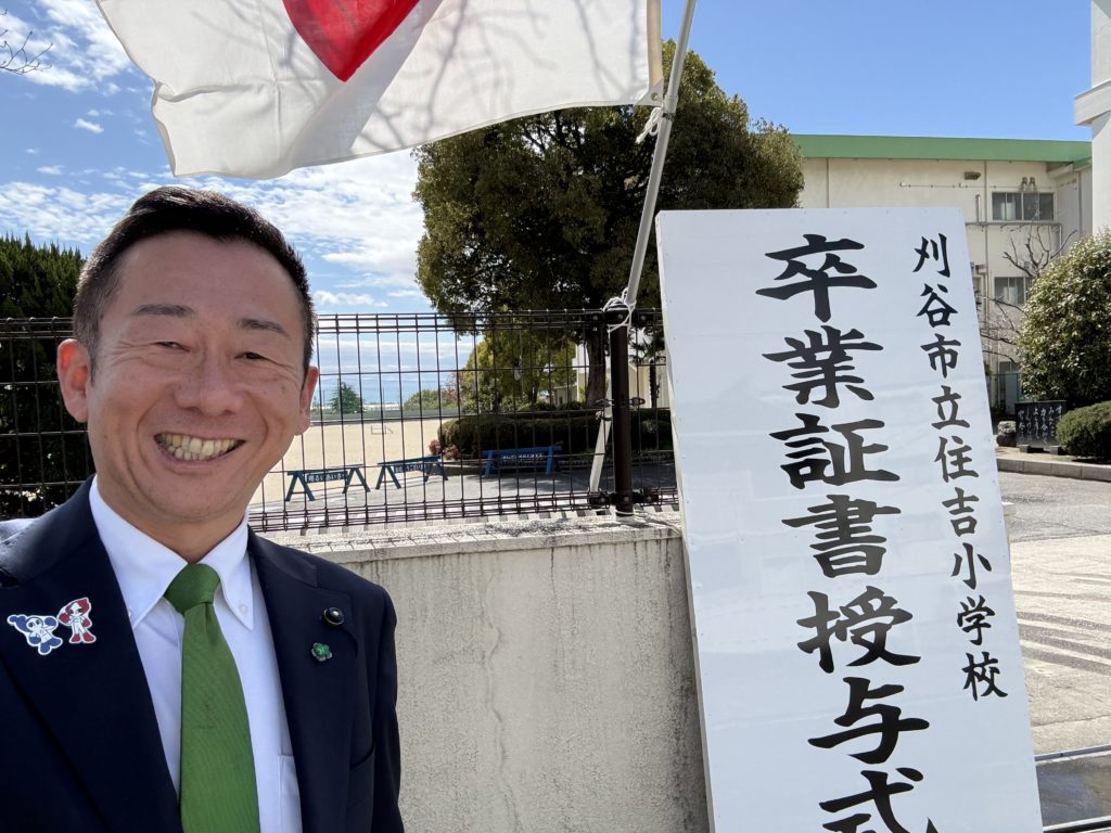 今日は、地元・刈谷市立住吉小学校の卒業証書授与式へ。124名の皆さんが中学校に向けてりっぱに巣立ちました。清水康好校長先生の「プライド・誇りを持ち、挑戦してほしい。当たり前の大切さを知ってほしい」とのご挨拶はじめ、小川教育委員・鎌田PTA会長のご挨拶、心に響きました。卒業生の皆さん、本当におめでとうございます。新たな人生のステージ、健康に気をつけてがんばってください!