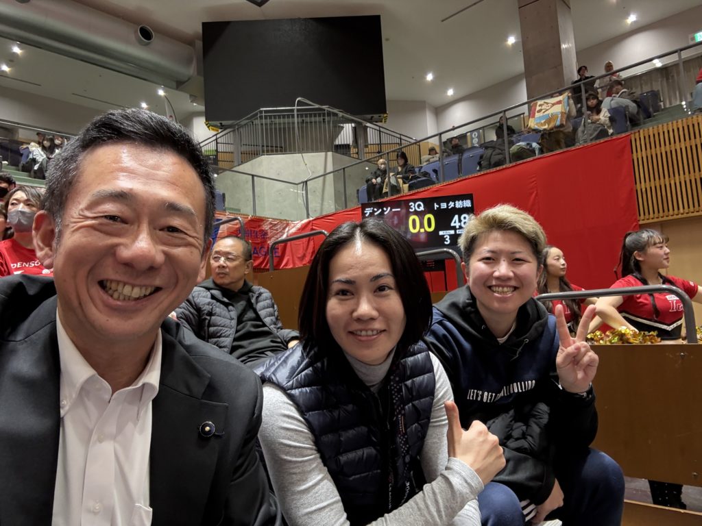 この週末も走り回りました!13日(土曜)は井ヶ谷地区のやまむら総合歯科・矯正歯科さんで、第3回「お口から健康を考える会」に出席。「きれいなお口を保つこと」「食べられるお口を保つこと」の大切さを改めて学びました。施設・在宅で介護に従事する皆さんから、お年寄りにとって大切なお口のケアが行き届かない現場の声をお伺いしました。私からも口腔衛生管理について、県行政に確認した現状についてお話させていただきました。14日(日曜)は元刈谷芸能発表会で、皆様の楽器演奏や空手演舞等を観させていただき、刈谷南部のあきんどマルシェで美味しい果物を買わせていただいた後、ウィングアリーナ刈谷へ!デンソーアイリスの試合を観戦しました。今週は「デンソー76周年創立記念Week刈谷大会」!デンソー創立記念日は1949年12月16日です。大勢のアイリスファンの歓声の中、トヨタ紡織サンシャインラビッツに77-58で勝利しました。私にも多くの皆さんからのお声がけ、ありがとうございました!