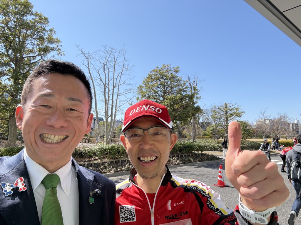 今朝の芸能大会へ出席後、デンソー本社で開催していた刈谷市「子ども自転車教室」へ!デンソー(電友会)自転車部の皆さんや警察の方が講師となり、子どもが補助輪を外して安全に自転車に乗るためのお助けをする会です。定員30人に対し100人の応募があり抽選となった人気イベント。会社と行政が連携して市民に貢献する素晴らしい取り組みです!子どもが一生懸命自転車をこぎ、みんなで支える様子を見て感動しました!その後、刈谷市総合運動公園へ。今日はデンソーカップサッカー第25回大学日韓戦。午前の女子の部を、デンソー総務部の皆さんと観戦しました!この盛り上がりを秋のアジア・アジアパラ競技大会にもつなげていきたいです!そして大手公園で行われた「春のパンフェスタ」へ!45店舗の美味しいグルメが集結し、こちらも多くの家族連れで盛り上がっていました。街のにぎわいの大切さをあらためて感じました。運営の皆さん、今回も本当にありがとうございました!