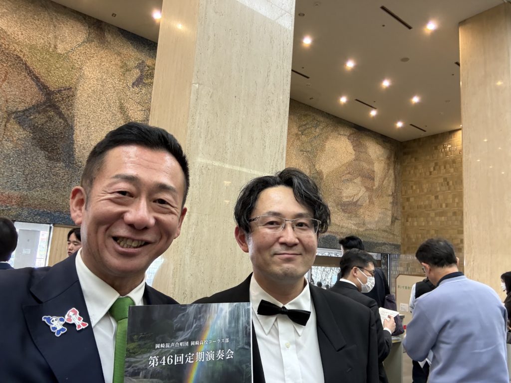 さらに名古屋へ移動し、私の母校・岡崎高校OBから成る岡崎混声合唱団と現役・岡崎高校コーラス部による第46回定期演奏会へ。私も音楽を教わった近藤惠子先生等の指揮のもと、トップレベルの合唱を味わいつくしました。私が、日々お世話になっている議会事務局 江尻さん(合唱団団長)の独唱も素晴らしかったです!